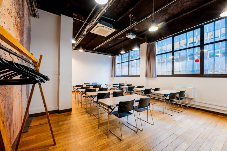 L’Usine, d’une superficie de 50m2, est en lumière du jour et est équipée de paper board, écran, fontaine à eau et portant pour vos vêtements.